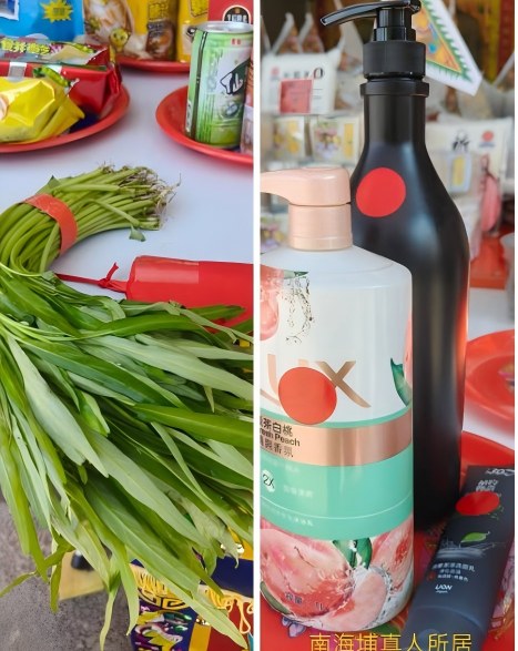 普度桌上的餅乾、飲料、日用品,甚至青菜水果,